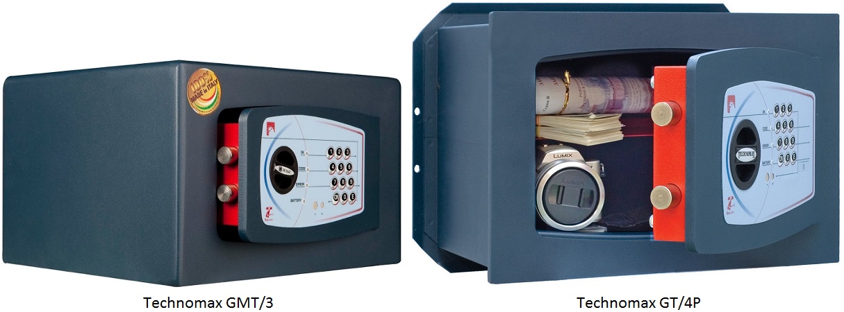 Вы можете приобрести у нас классические модели серии Technomax GMT – отличный вариант для офиса и дома, для хранения ручного оружия и для встраивания в мебель, – и встраиваемые сейфы Technomax GT, так называемые сейфы-тайники, монтируемые в стену.