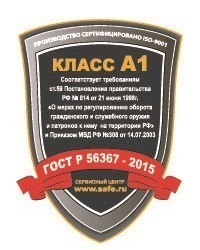 — Изделие сконструировано исходя из требований статьи 59 Постановления правительства РФ № 814 от 21 июля 1998 года «О мерах по регулированию гражданского и служебного оружия и патронов к нему на территории РФ».